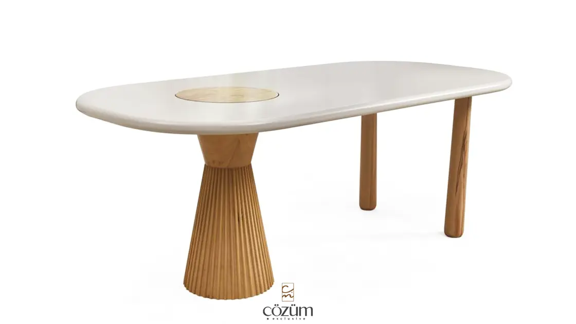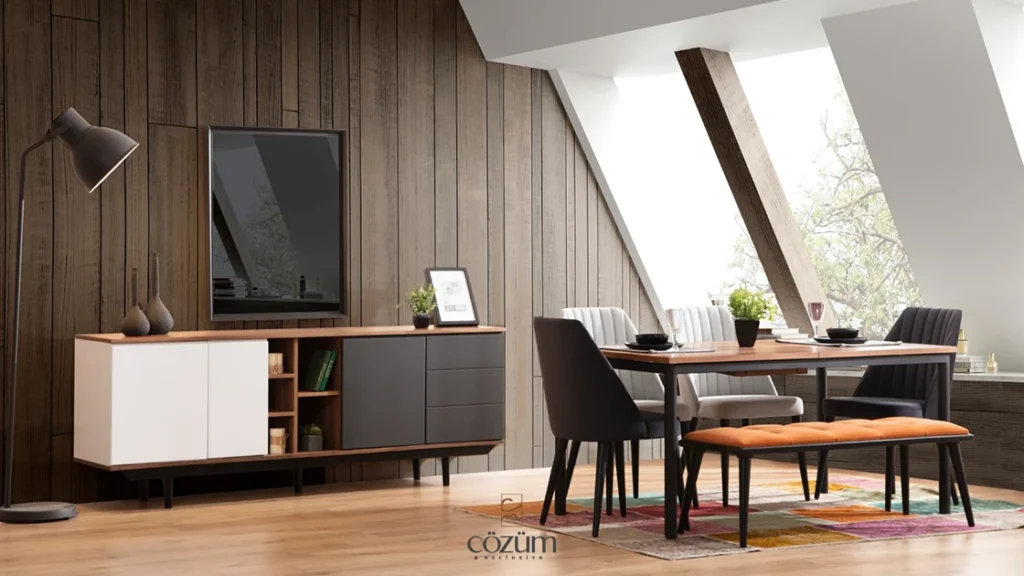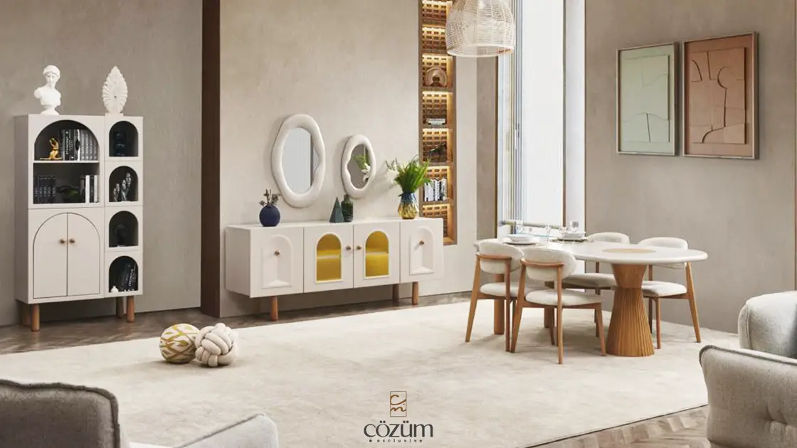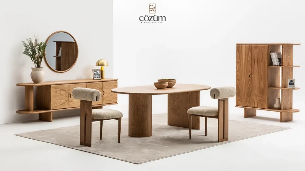 Als Çözüm Furniture bieten wir Ihnen Eleganz und Qualität. Die Esszimmergarnitur Oasis, die den böhmischen Stil widerspiegelt, zieht mit ihrer robusten Struktur und ihrem auffälligen Design die Aufmerksamkeit auf sich. Dieses Set, bei dem jedes Detail sorgfältig entworfen wurde, leistet einen ästhetischen Beitrag zur Atmosphäre Ihres Zuhauses.