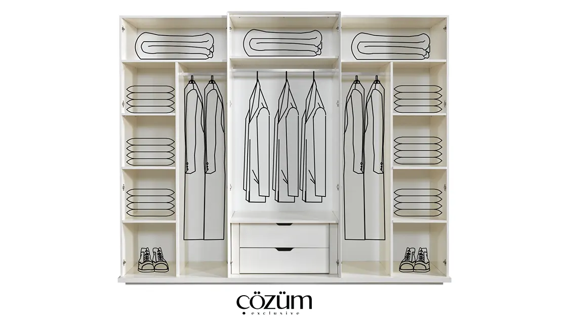 - Dolap Genişlik:262cm, Yükseklik:215cm Derinlik:61.5