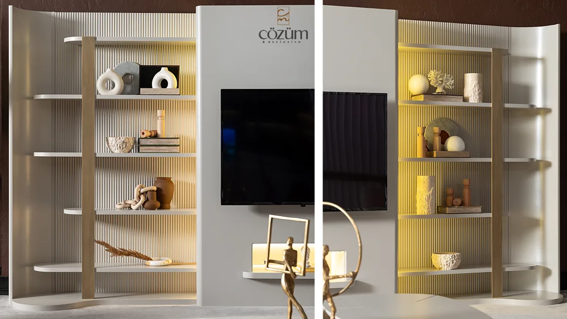 Çözüm Mobilya olarak Kısıkköy Mobilya Şehri’nin en büyük ve en geniş ürün sergileyen mağazasında, 3 katlı ve 3.000 m² alanda hizmet veriyoruz. Televizyon keyfinizi en üst seviyeye taşıyacak olan Porto TV Ünitesi Takımı, hem fonksiyonel hem de şık tasarımıyla yaşam alanlarınıza değer katıyor.